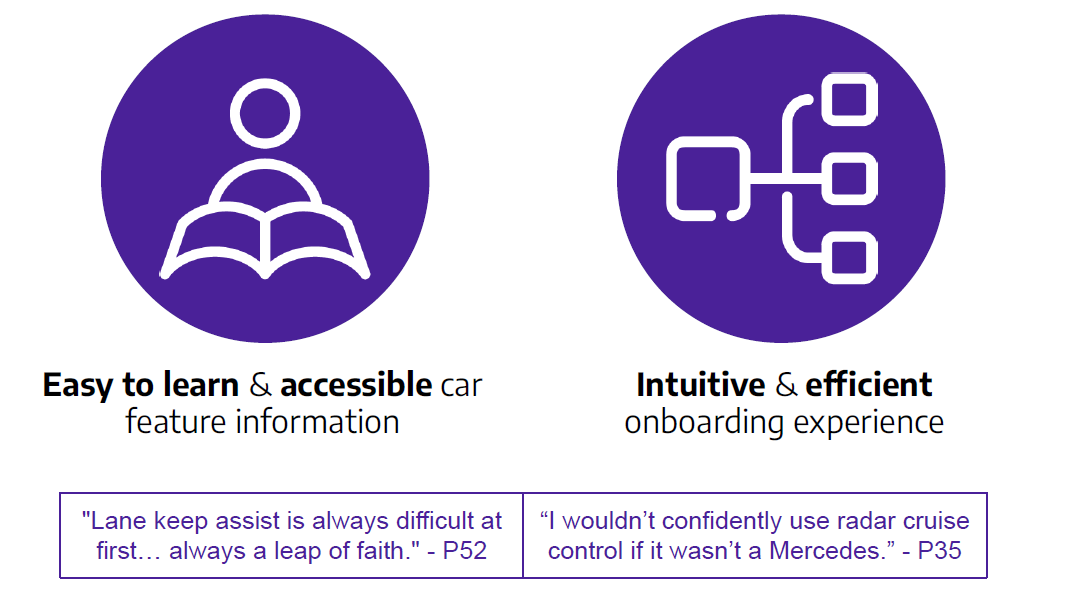 Our key takeaways from this survey included the fact that most users indicated they would want an on-boarding feature in a rental car, users were not too comfortable with CAV features: