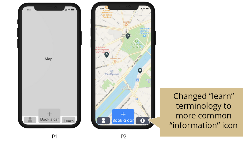 • Confusion over the term ‘learn’. Lack of user location icon on the map.