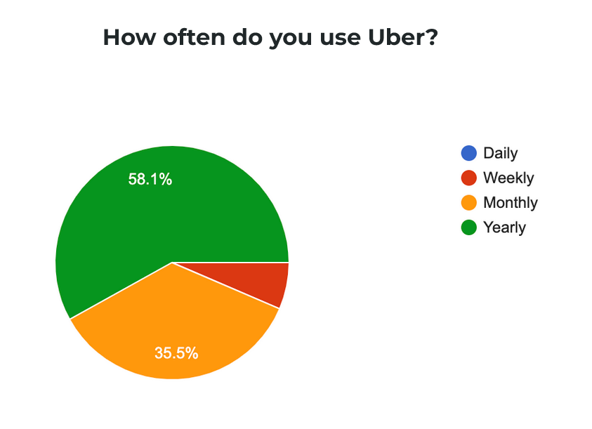 We found that although our users all had varying usage patterns, one thing stood out too us; only one participant had knowingly used Uber Reserve (1.6%). This lack of awareness with respect to Uber Reserve caught us offguard, however moving forward the team generated the following recommendations to guide our usability testing: